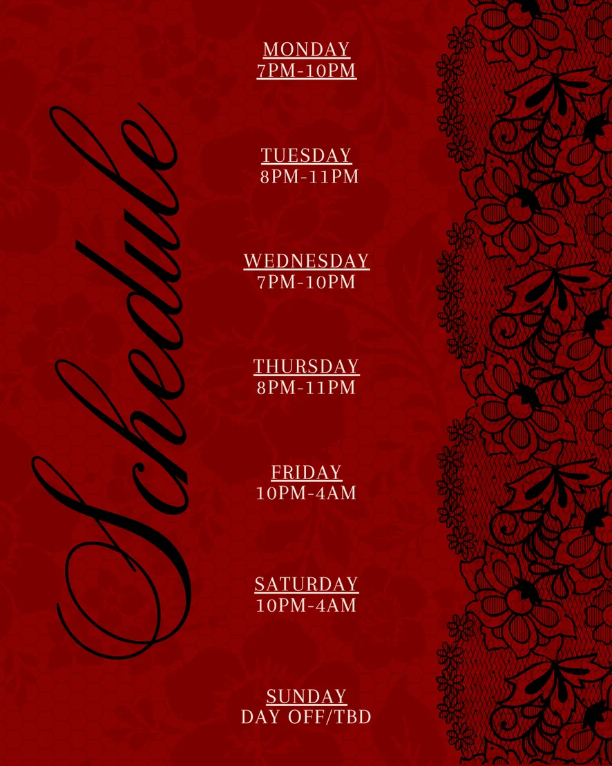 트월킹, 카멜토우, 치마속, 딜도 또는 바이브레이터, 플래싱, 풋 페티시, 자위, 스팽킹, 자지 평점, 에로틱 댄스, 굴욕, 마사지, 오일 쇼, 오르가즘, 섹스 기구, 스트립쇼, 상의탈의